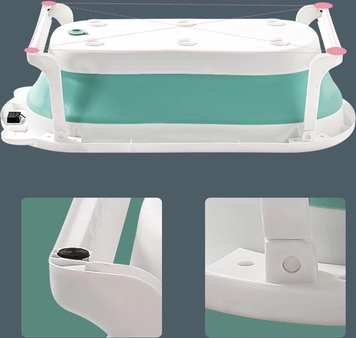 Het badje heeft stevige inklapbare poten, waardoor het goed en veilig blijft staan. Bent u klaar met badderen? Dan kunt u het water gemakkelijk laten lopen door de badstop. Het badje neemt zeer weinig ruimte in beslag. Na het inklappen is het badje 7 cm dik. Ideaal om mee te nemen. Dit kan tevens een zeer leuk kraamcadeau zijn!