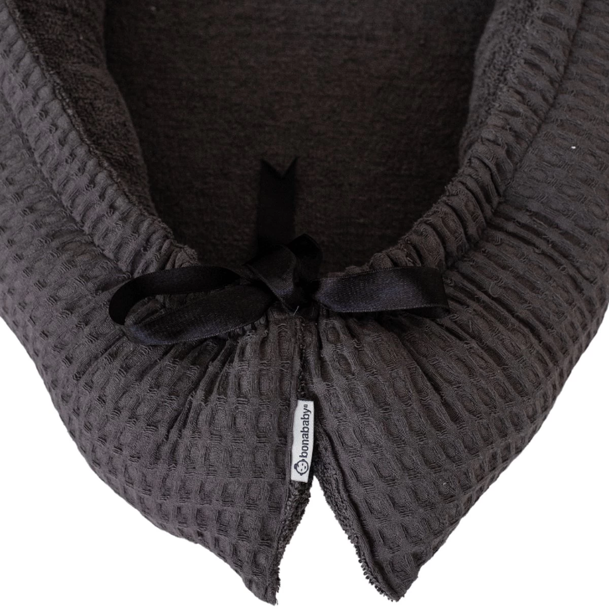 In de rand van het nestje zit een touwtje, waarmee je de maat helemaal kan aanpassen op jouw baby. Je baby voelt zich hierdoor geborgen, net als bij inbakeren. Een vertrouwd gevoel, net als toen hij veilig in de baarmoeder zat.