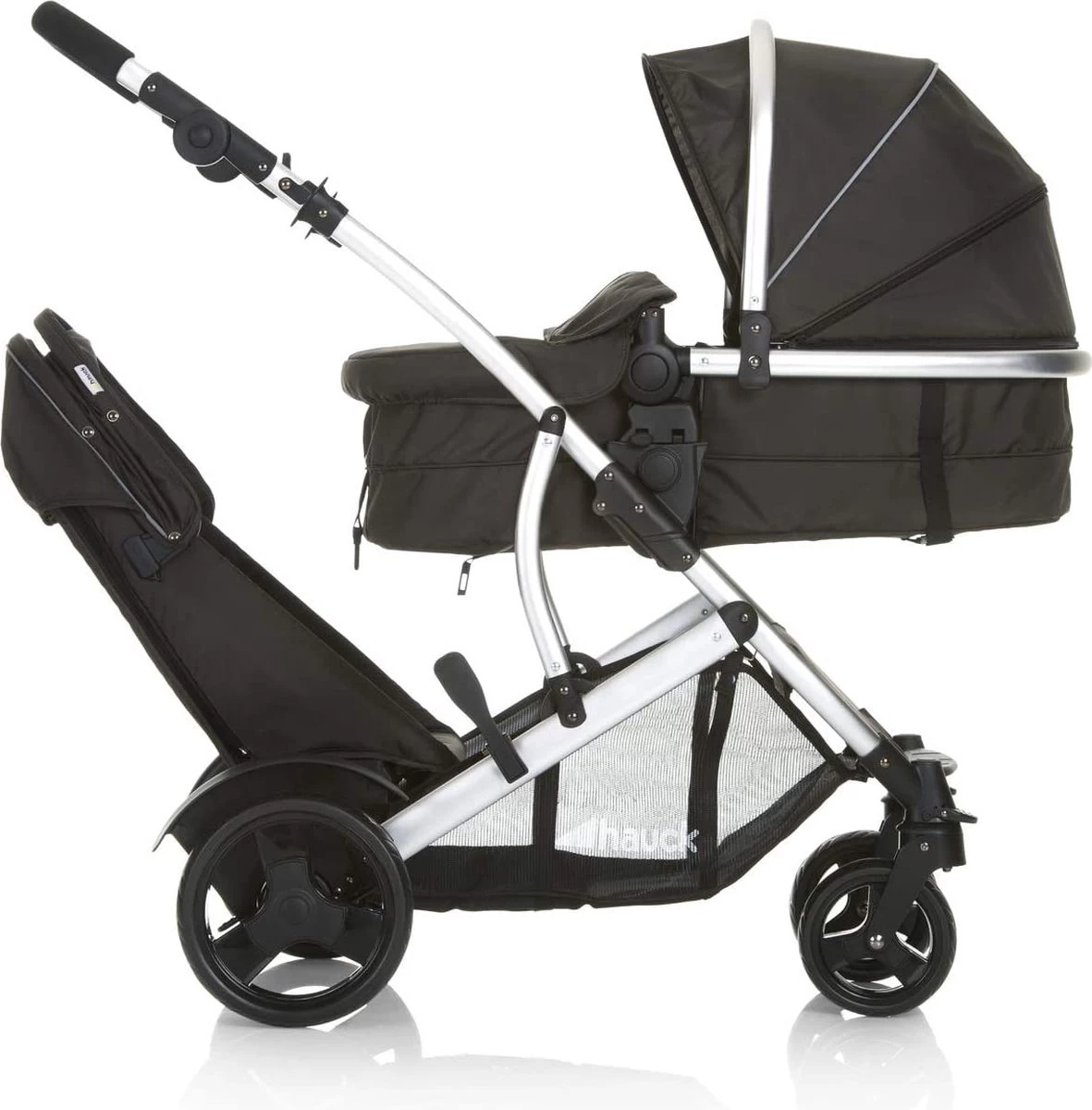 Deze slimme broer en zussen kinderwagen Duett 2 past zich gemakkelijk aan uw gezin aan. Het hoofdzitje kan zowel als kinderwagen voor een pasgeboren baby of als comfortabel zitje voor een peuter worden gebruikt door deze via de bevestigingen om te zetten.