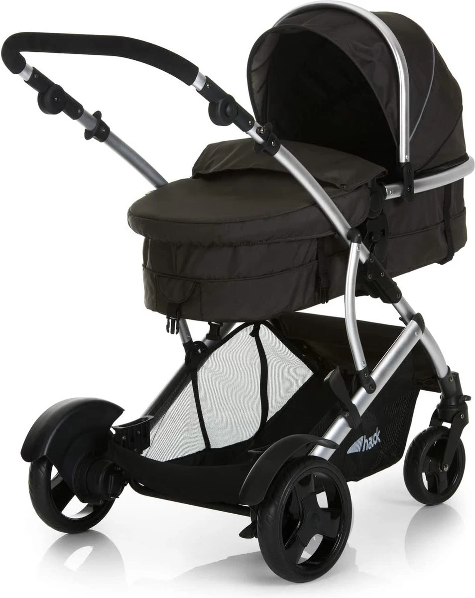 In de zachte kinderwagen met overtrek voelt je pasgeborene altijd veilig aan. Als je kind groeit, kan de kinderwagen door het openen van de riemgespen gemakkelijk in een omkeerbare stoel worden veranderd. De stoel kan in beide richtingen worden geïnstalleerd en in de ligpositie worden aangepast. Tegelijkertijd kan de grote luifel worden uitgebreid door het openen van de ritssluiting, die een deel in het netweefsel ontdekt.