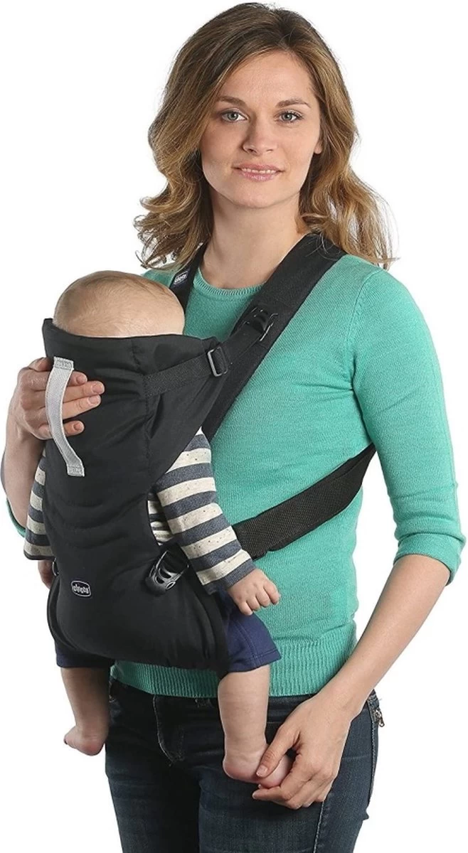 Met de Chicco Easy Fit Draagzak kan je de kinderwagen af en toe laten staan en heb je je kindje lekker dicht bij je! Deze buikdrager is geschikt voor baby’s tot 9 kg. Je kan je kindje in twee verschillende posities dragen, met het gezichtje naar jou toe (vanaf de geboorte), of met het gezichtje op de buitenwereld gericht (vanaf 4 maanden).