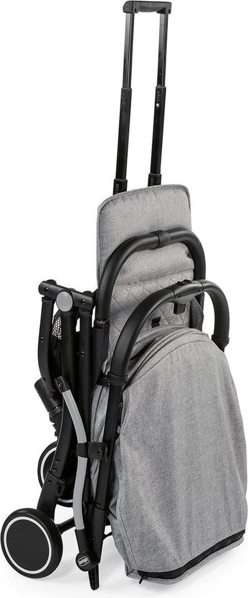 Een kinderwagen kan nogal zwaar en onhandig zijn om mee te nemen, maar daar komt verandering in met de Chicco Trolley Me kinderwagen. Deze Trolley Me heeft als belangrijkste kenmerk dat deze volledig inklapbaar is in de grootte van een koffer en ook als een koffer kan worden meegedragen. Je kan de buggy werkelijk als een trolley achter je aan trekken.