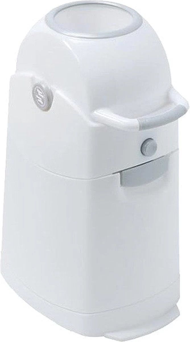 Diaper Champ – luiers reukloos weggooien en geld besparen – De luieremmer is een echte kampioen als het om luiers geurloos opruimen en geld besparen gaat. Vanwege het unieke, gepatenteerde klapmechanisme in het deksel, is de luier (zowel wegwerpluiers als herbruikbare luiers) met één enkele bewegingweggegooid, zonder geconfronteerd te worden met de geur van de luier. Het belangrijkste is echter de kosten besparing die op lange termijn opkan lopen tot ca. 250 euro. Dit komt omdat je gewoon gebruik kunt blijven maken van de normale huishoud vuilniszakken (60L). Zo hoef je geen speciale en dure zakken te kopen. De emmer heeft een capaciteit van ongeveer 30 luiers en een hoogte van 56 cm.