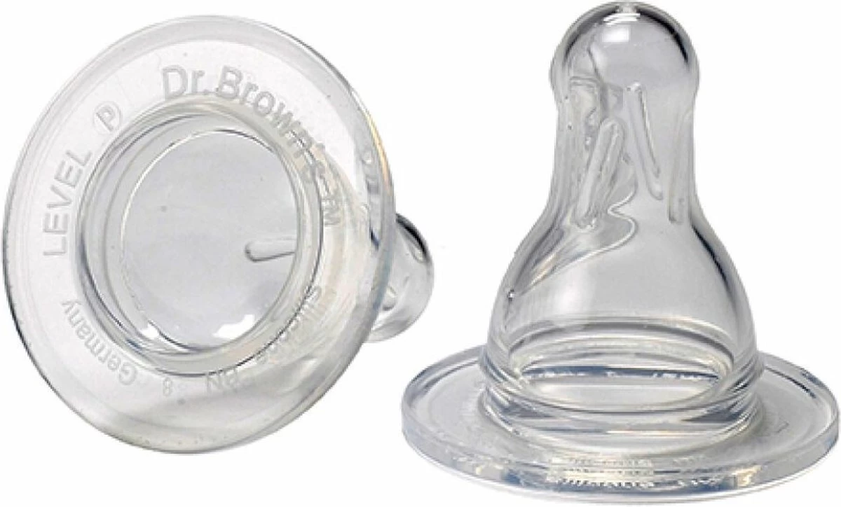 Dr. Brown’s heeft diverse soorten spenen. Het verschil zit in de snelheid waarmee de voeding doorstroomt. Fase 2 vloeit sneller door dan fase 1, fase 3 sneller dan fase 2, etc. In de tabel zie je precies welke speen geschikt is voor jouw kindje.