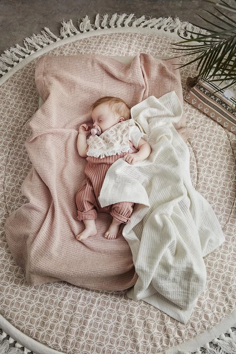 Het cellular wiegdeken of katoenen dekentje van Elodie is perfect voor jonge baby’s en kleine kindjes. De kleine gaatjes in de stof zorgen voor een optimale luchtdoorstroming, ideaal om veilig te slapen en op warme dagen. Dit deken heeft een retro look en kan je perfect combineren met andere dekentjes, aangepast aan de omgevingstemperatuur. Het kan ook perfect dienen als ademend zonnescherm of bescherming tegen insecten over de kinderwagen of buggy. De ademende stof houdt de baby warm in de winter en koel in de zomer. Het dekentje is gemaakt van 100% Oeko-Tex gecertificeerd katoen.