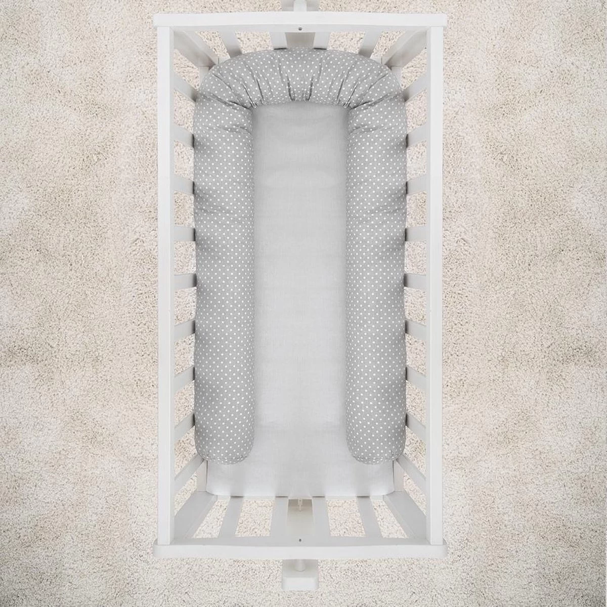 - Multifunctioneel – De ledikantbumper dient niet alleen als valbescherming voor je baby. Hij kan ook als babynestje, borstvoedingskussen, zwangerschapskussen en positioneringskussen gebruikt worden.