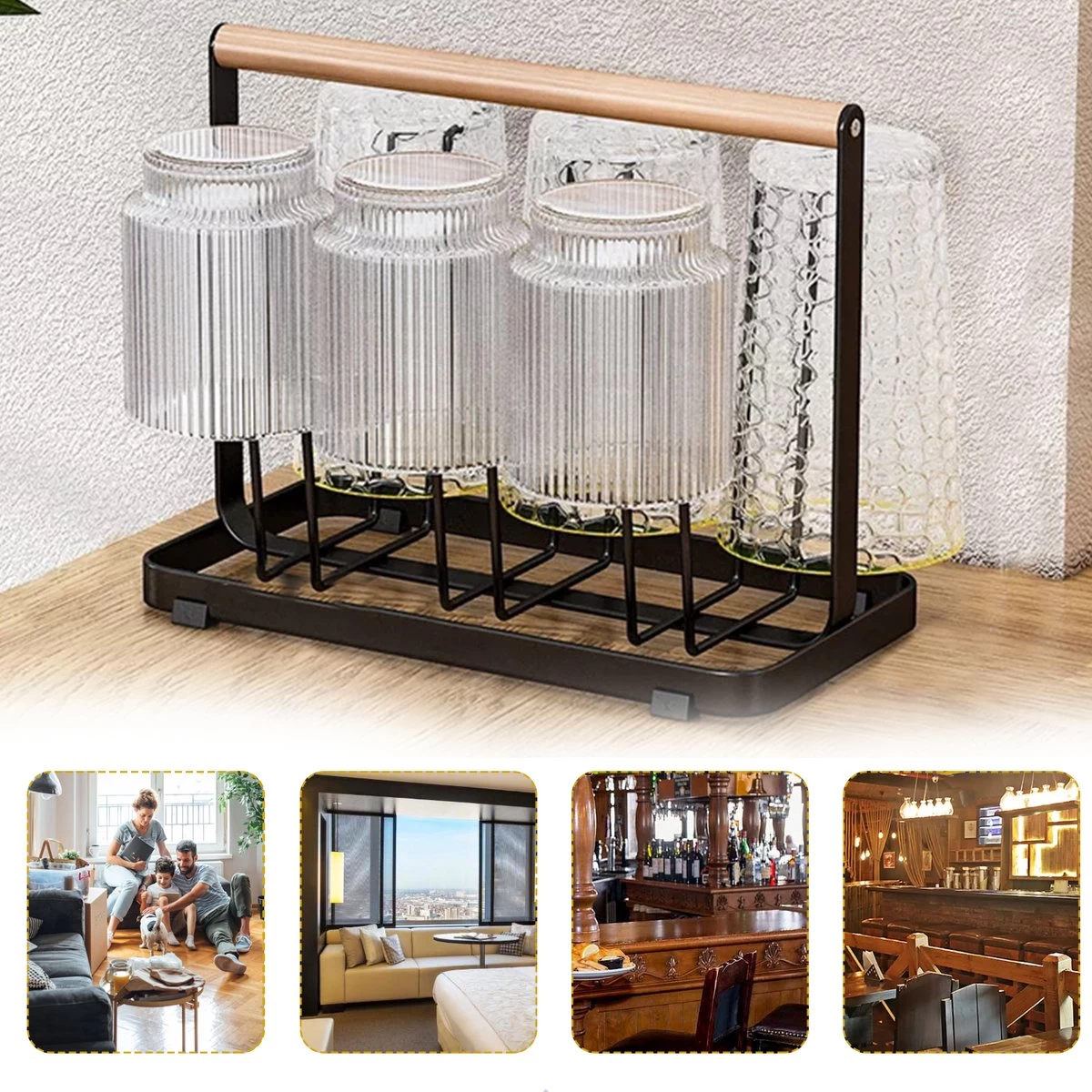 Flessenrek – Droogrek Babyfles – Flessen Rek Baby – Flessendroogrek – Afdruiprek – Afwasrek – Flessenrekje – Lekbak – Égouttoir – Zwart Met Houten Handvat – Vetalo