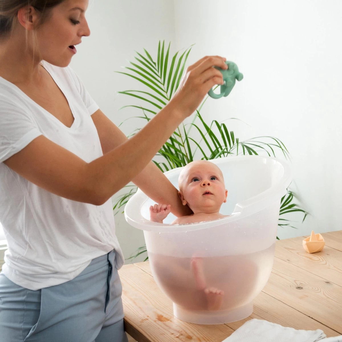 Dit babybadje van BabyDan is geschikt voor baby’s tot ongeveer 6 maanden. Doordat er in dit badje minder water gaat dan normaal, blijft het water langer op temperatuur. Dankzij de schuine rand biedt het badje een goede armondersteuning.