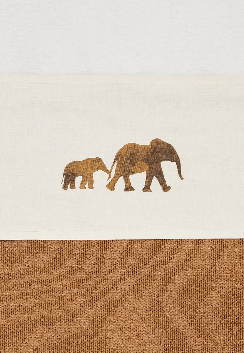 Zacht ivory lakentje dat geschikt is voor het ledikant. Het laken heeft een leuke opdruk van olifantjes passend bij het Savannah thema. Je vouwt het lakentje zo, dat de avontuurlijke olifantjes goed zichtbaar zijn. De kleur kun je precies combineren met dezelfde kleur deken uit de Basic Knit collectie óf je kiest juist voor een andere combinatie van kleuren.