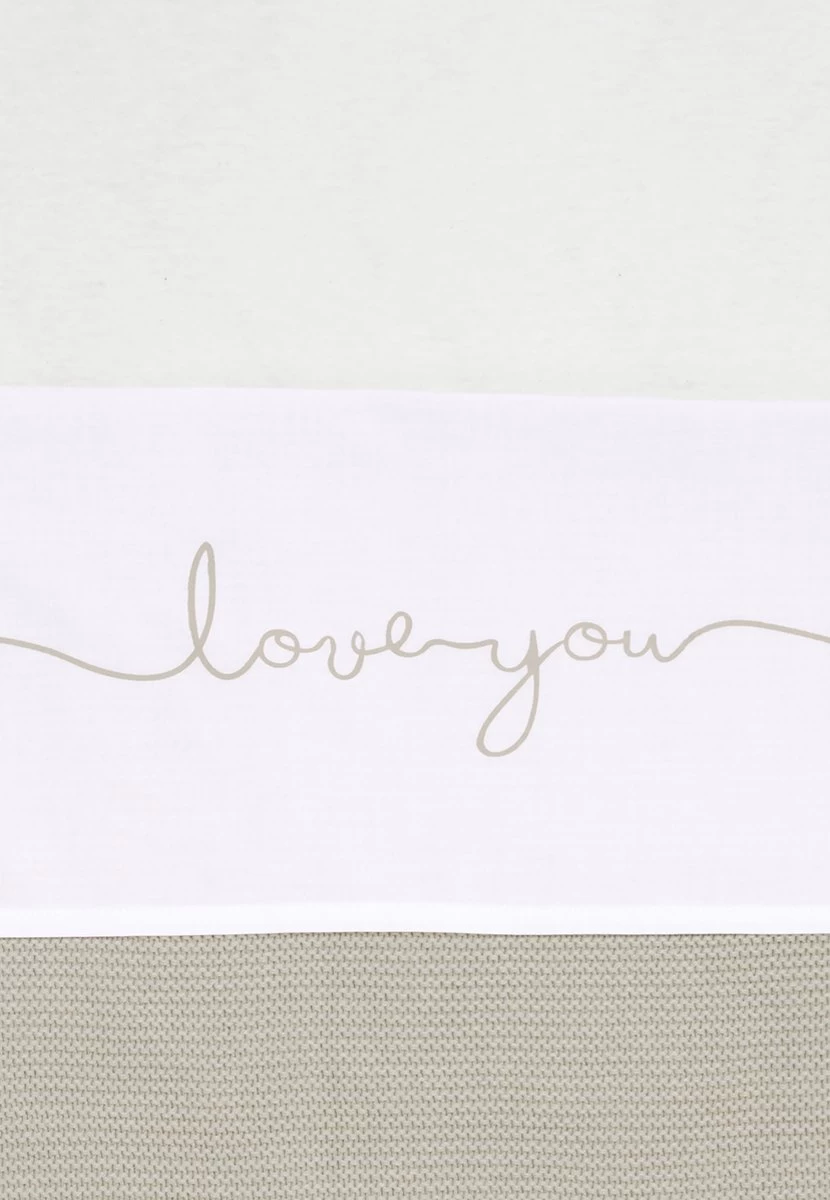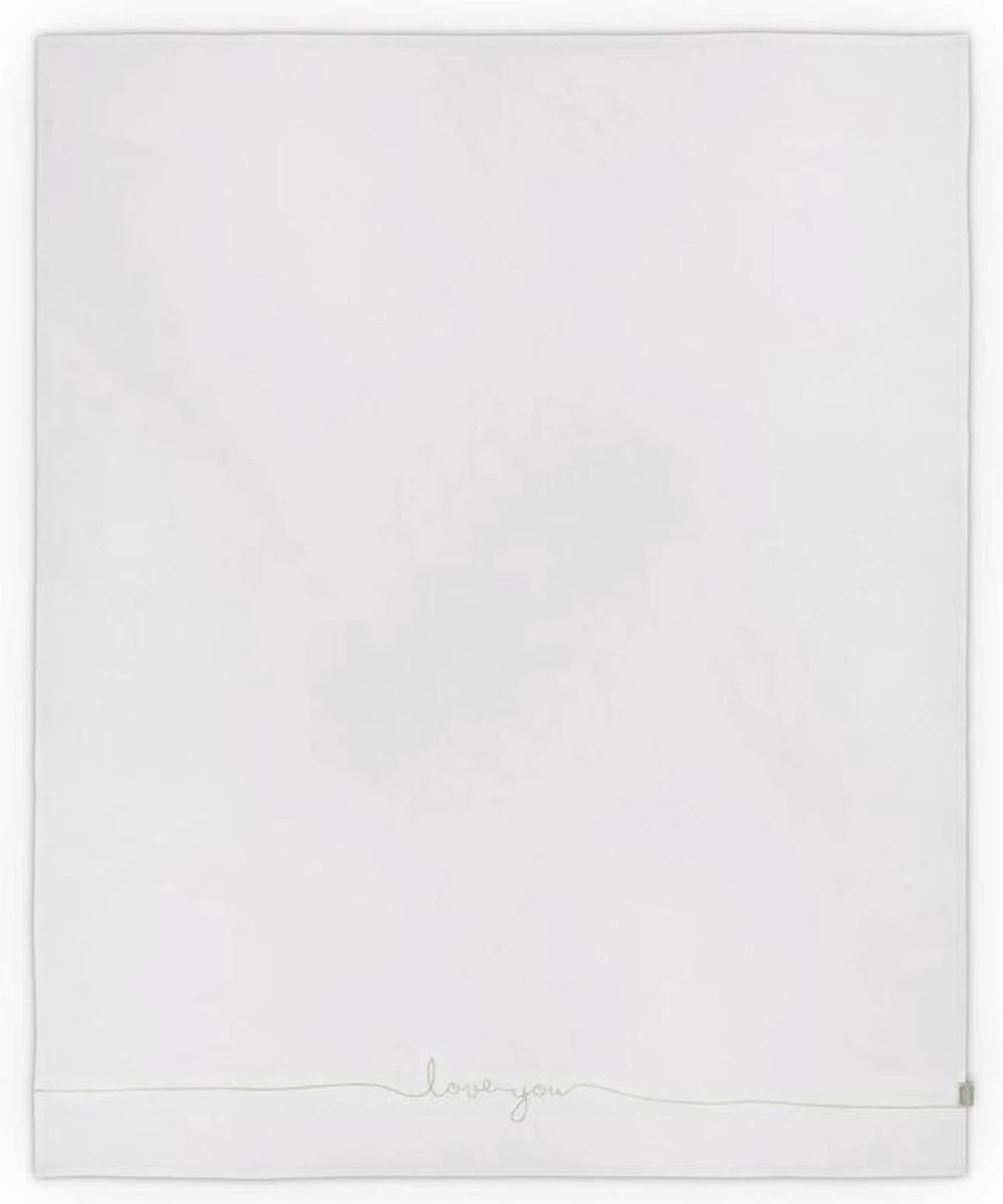 Met een wit lakentje kun je het bedje van jouw baby veilig, kort en strak opmaken. Door de zijkanten van het lakentje onder het matrasje te stoppen, slaapt jouw kleintje niet alleen veilig, maar heeft het ook een geborgen gevoel. Dit lieve lakentje met de tekst ‘love you’ past perfect bij de dekens uit het Basic knit thema en het Bliss knit thema van Jollein.