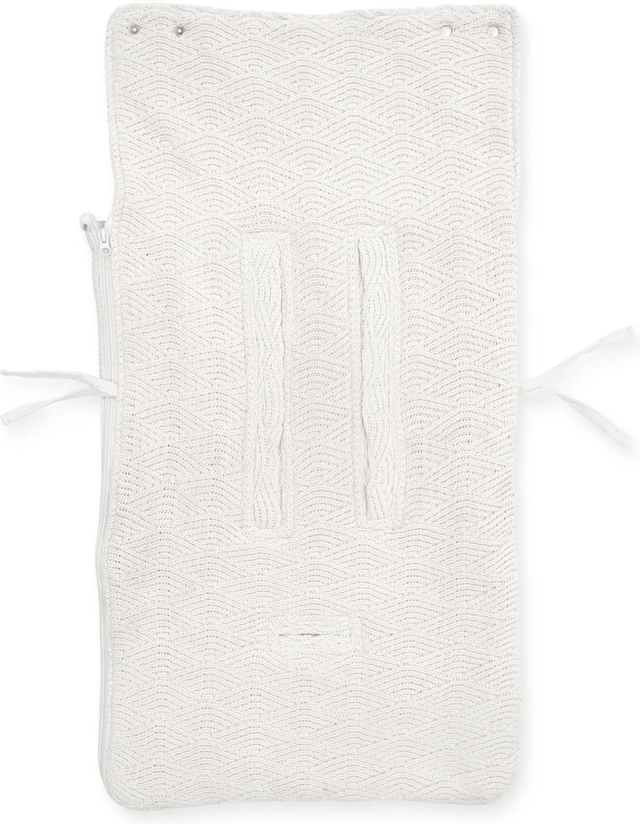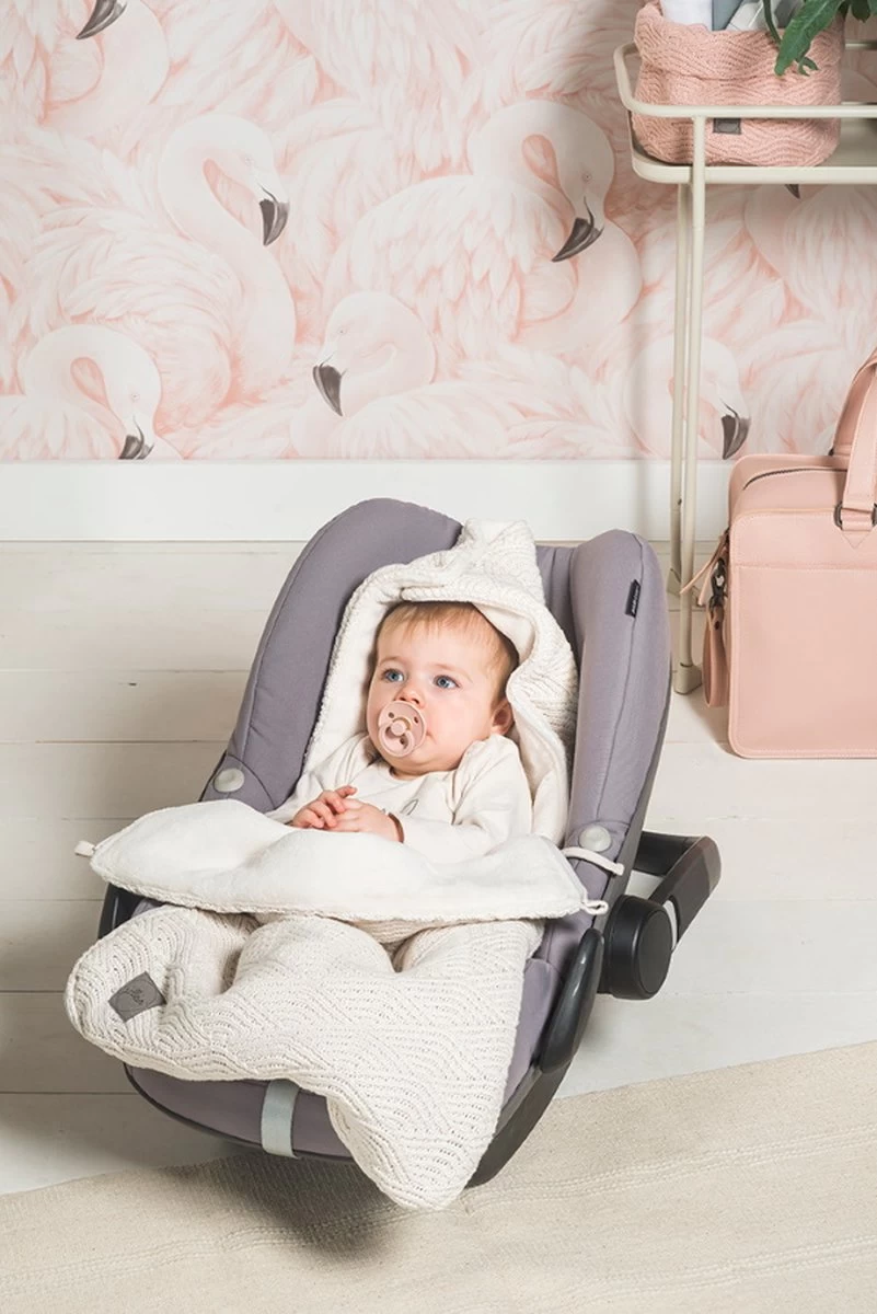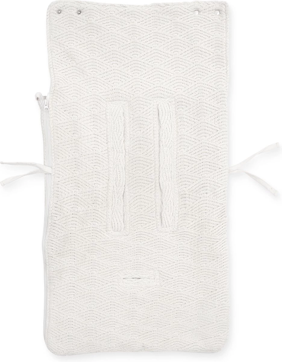 De River knit voetenzak is aan de buitenzijde van prachtig breisel in golfjespatroon en is lekker zacht aan de binnenkant door de teddystof. De trendy kleuren en de rijke breisels van deze river knit lijn zijn heel stijlvol. Een voetenzak is echt een uitkomst. Je baby leg je gemakkelijk in de voetenzak door de zak eerst helemaal open te ritsen. Ook haal je jouw baby makkelijk uit de autostoel door de voetenzak helemaal open te ritsen. Van de bovenkant maak je met één drukknoopje supersnel een mutsje, zodat ook het hoofdje warm blijft zodra je de autostoel buiten draagt of een wandeling maakt. Om er voor te zorgen dat je baby het in de auto niet te warm krijgt open je de rits van de zak zover als nodig. Kortom: een super handige comfortbag voor je baby. De voetenzak is voorzien van openingen in de achterkant om het vastmaken van de gordels extra makkelijk te maken. Het is een universele voetenzak voor de Maxi Cosi en alle andere categorie 0 autostoeltje met drie of vijfpuntsgordel. Je kunt de voetenzak ook in de kinderwagen gebruiken. Zo is je baby in een mum warm ingepakt voor de wandeling.
