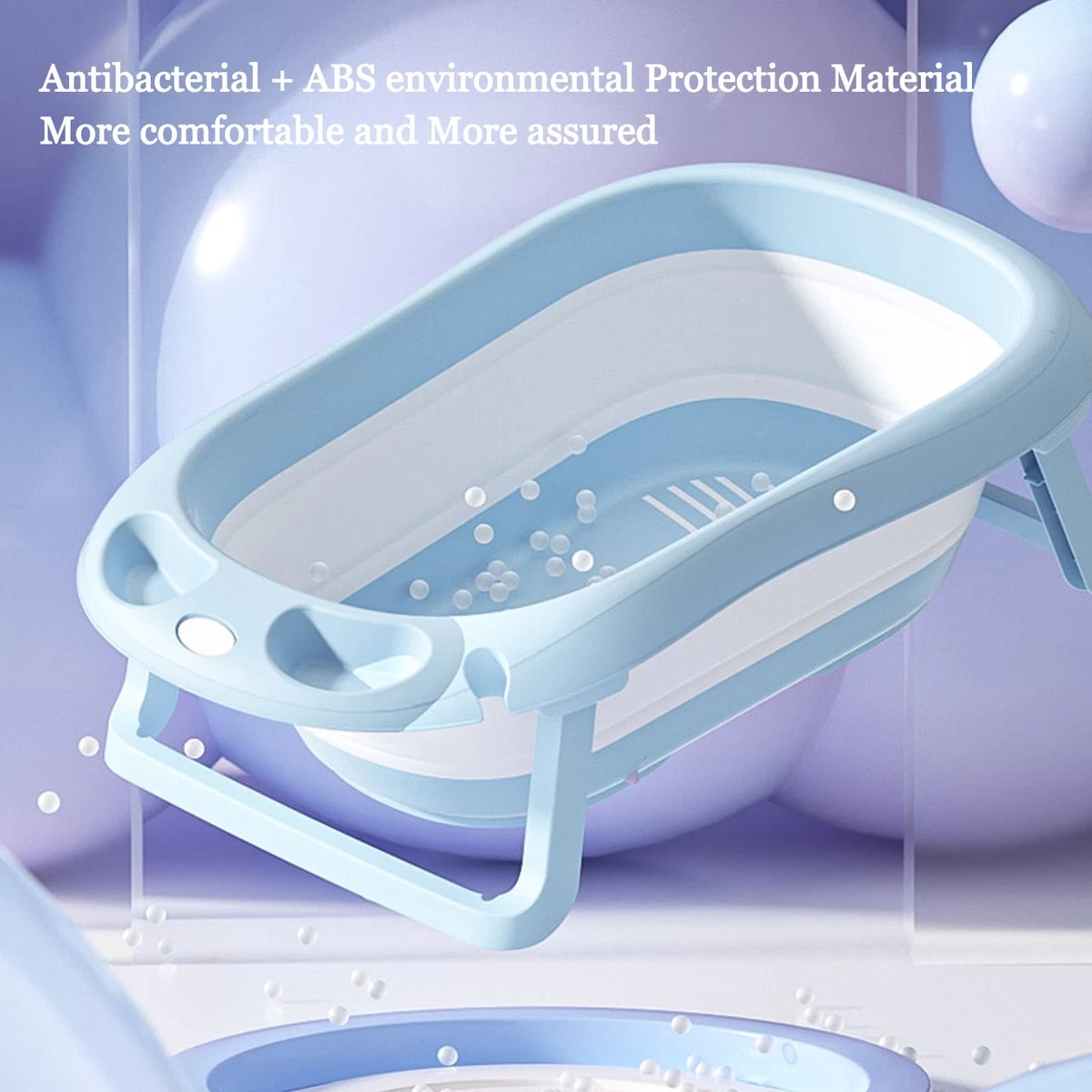 Het opvouwbare babybadje is uitgerust met afvoerplug, vloerafvoertype afvoerontwerp, en de bodem is verhoogd. Het is handiger om water af te voeren zonder te dragen. De moeder kan het ook met één hand bedienen, wat energie bespaart.