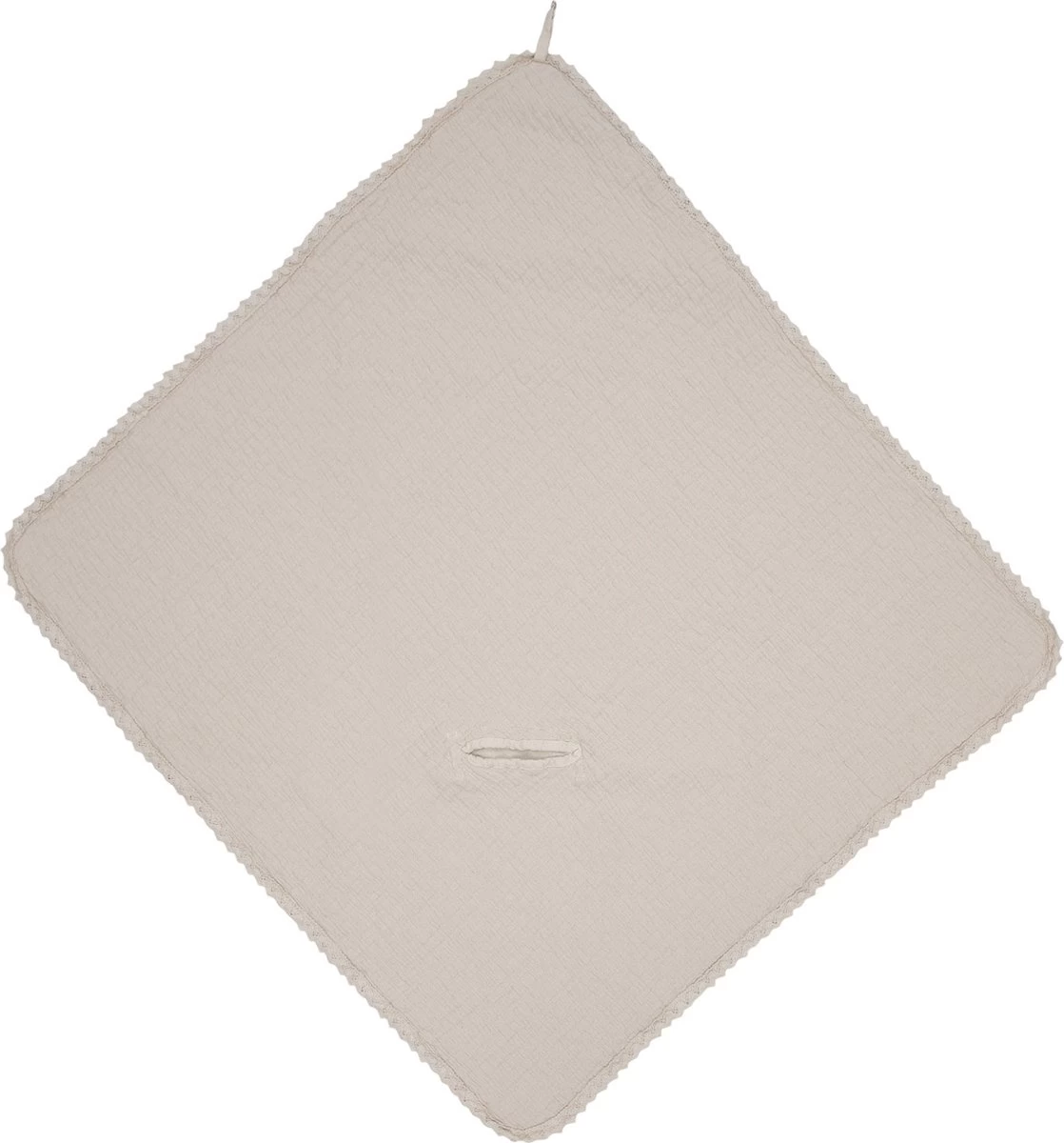 Deze omslagdoek is voorzien van een opening zodat de doek ook met de gordels van de auto- of wipstoel gebruikt kan worden. Zo blijft je kleintje altijd comfortabel warm, zowel in huis als onderweg. De omslagdoek is ook fijn om te gebruiken tijdens het voeden. Met de ophanglus hangt de doek altijd binnen handbereik in de bad- of babykamer. Neem je omslagdoek ook mee naar het consultatiebureau; ideaal voor als je nog even op je afspraak wacht.Ieder nieuw voorjaar koesteren we het weerzien met Elba! Elba is onze favoriete, verfrissende zomerse stijl waarvan ons hart steeds opnieuw een sprongetje maakt. De luchtige, koele stof is gemaakt van 100% katoen en kenmerkt zich door het subtiele biesje van katoenkant dat op elk item is te vinden. Het subtiele, jacquard ingeweven reliëf en de stonewashed finish geven de stoere structuur en unieke look aan de stof waardoor Elba zowel in een jongens- als meisjes babykamer past. Feel the breezy Elba summer vibe!