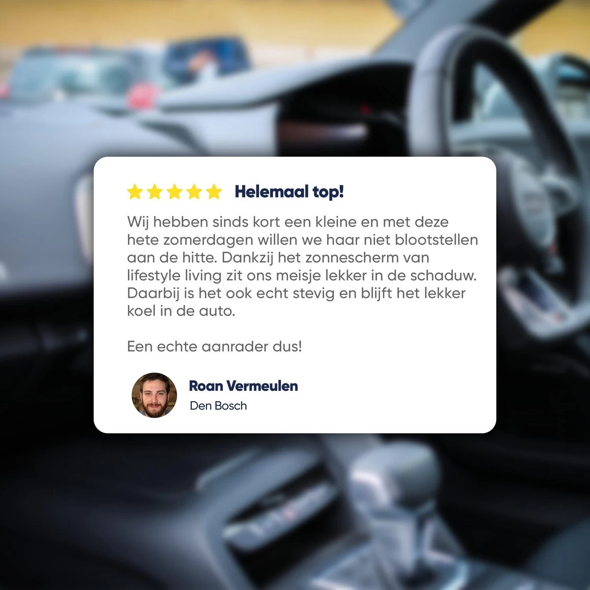 ✔ Veilig bij glasbreuk – Mocht er onderweg iets tegen het raam komen waardoor het breekt dan zal het zonnescherm de mogelijke scherven tegen houden. Dit is wel zo veilig voor jou en je gezin!