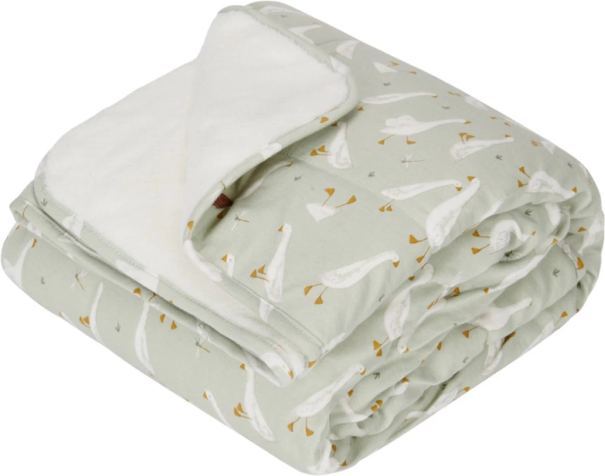 Deze Little Dutch wiegdeken uit de Little Goose collectie heeft aan de ene kant een katoenen stof, aan de andere kant een heerlijk zachte teddy stof. Hierdoor heeft het deken een luxe en warme uitstraling.
