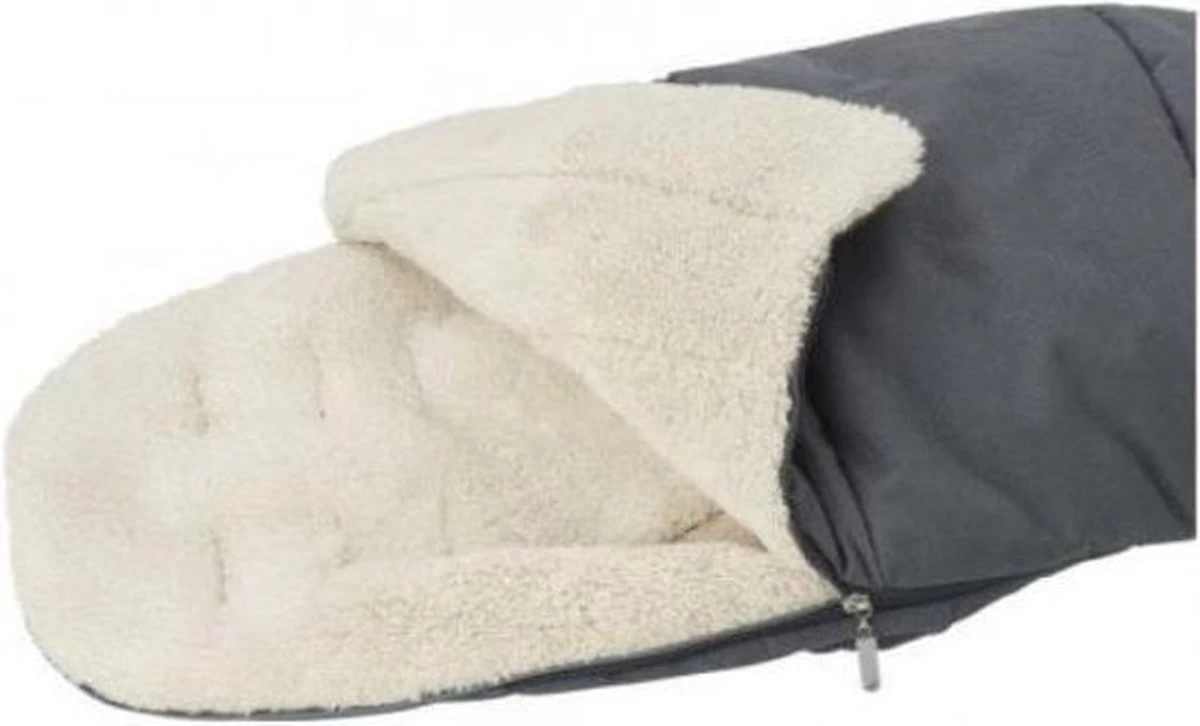 - Door de voorkant los te ritsen verander je de voetenzak in een warm onderdekentje