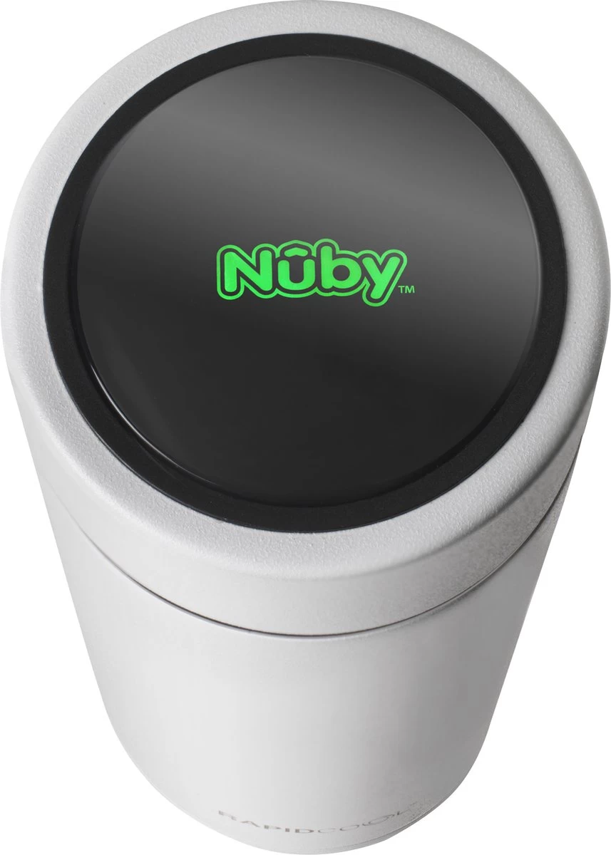 - SIMPEL DIGITAAL DISPLAY: Zie hoe het “Nuby” LED-lampje op het deksel verandert van rood naar oranje (koelen) naar groen (klaar). Eens het lampje groen wordt, is je baby’s flesje gezakt naar de perfecte temperatuur en klaar te serveren!