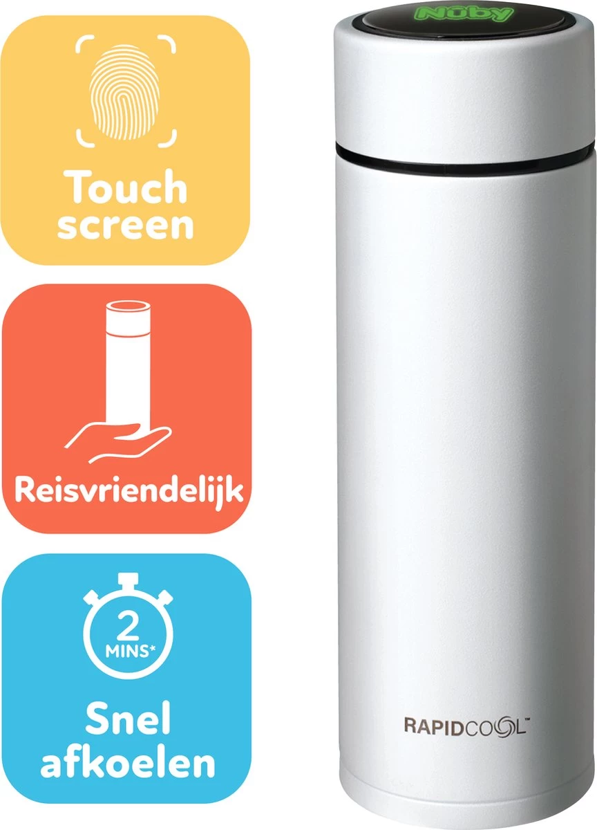 - KLAAR TE SERVEREN: De RapidCool koelt je baby’s flesvoeding van kookpunt naar de perfecte temperatuur in slechts 2 minuten*. Zo ben je steeds klaar je kindje te voeden wanneer nodig.