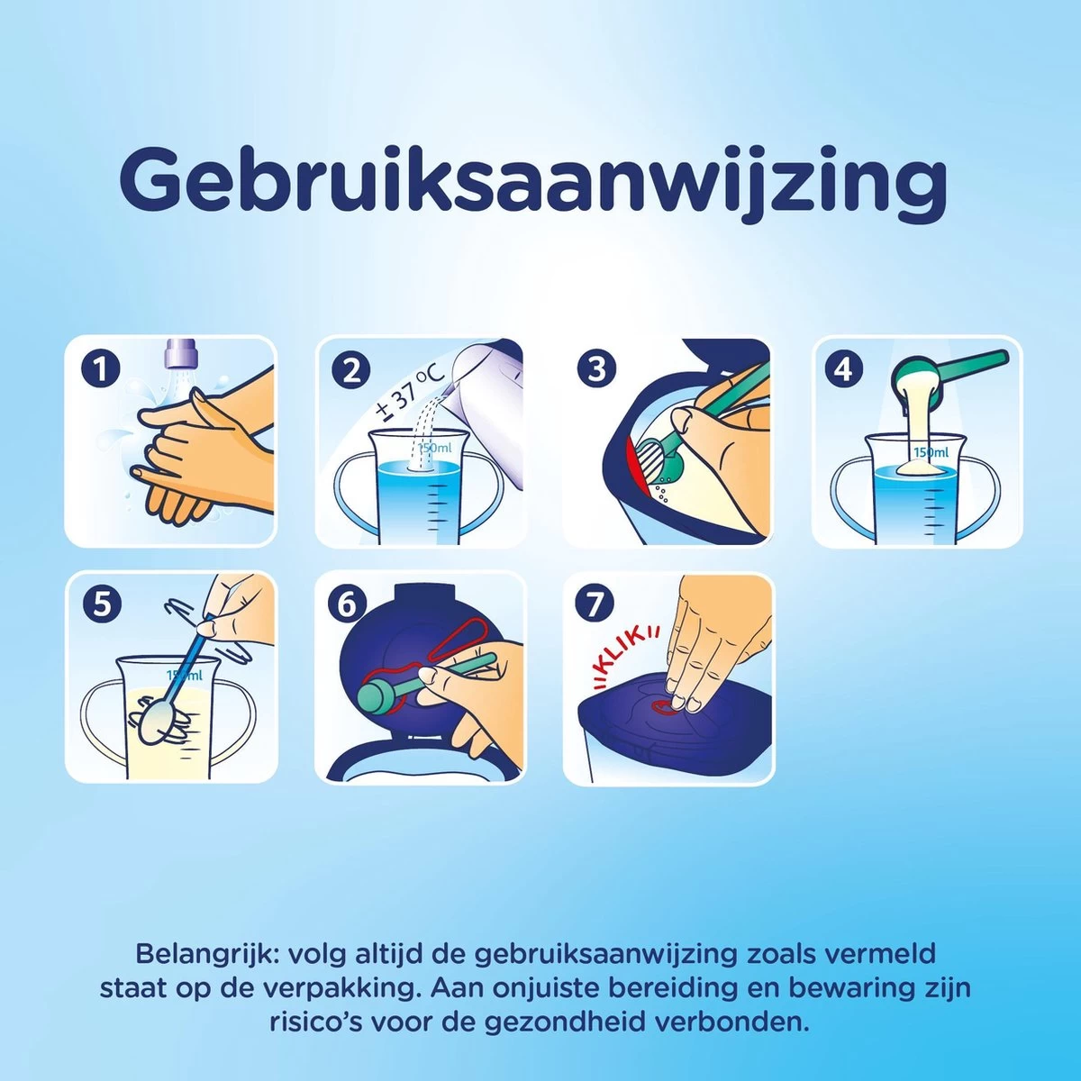 | Ingrediënten | Ingrediënten : Magere melk, lactose (melk), galacto-oligosacharide (melk), gedemineraliseerde wei (melk), wei-eiwit concentraat (melk), maltodextrine, palmolie, zonnebloemolie, koolzaadolie, tricalciumfosfaat, dikaliumhydrogeenfosfaat, fructo-oligosacharide, visolie, trimagnesiumdicitraat, calciumcarbonaat, melkaroma, L-ascorbinezuur, emulgator (sojalecithine), vanilline, natrium-L-ascorbaat, ijzersulfaat, zinksulfaat, cholecalciferol, DL-α-tocoferylacetaat, calcium D-pantothenaat, cyanocobalamine, pteroylmonoglutaminezuur, riboflavine, nicotinamide, DL-α-tocoferol, retinylpalmitaat, D-biotine, pyridoxinehydrochloride, thiaminehydrochoride, kaliumjodide, fytomenadion. |