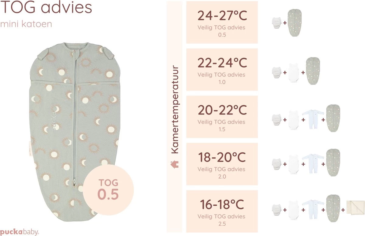 Puckababy Inbakerslaapzak Original Mini – 3-6 Maanden – Cotton – Eclipse Clay