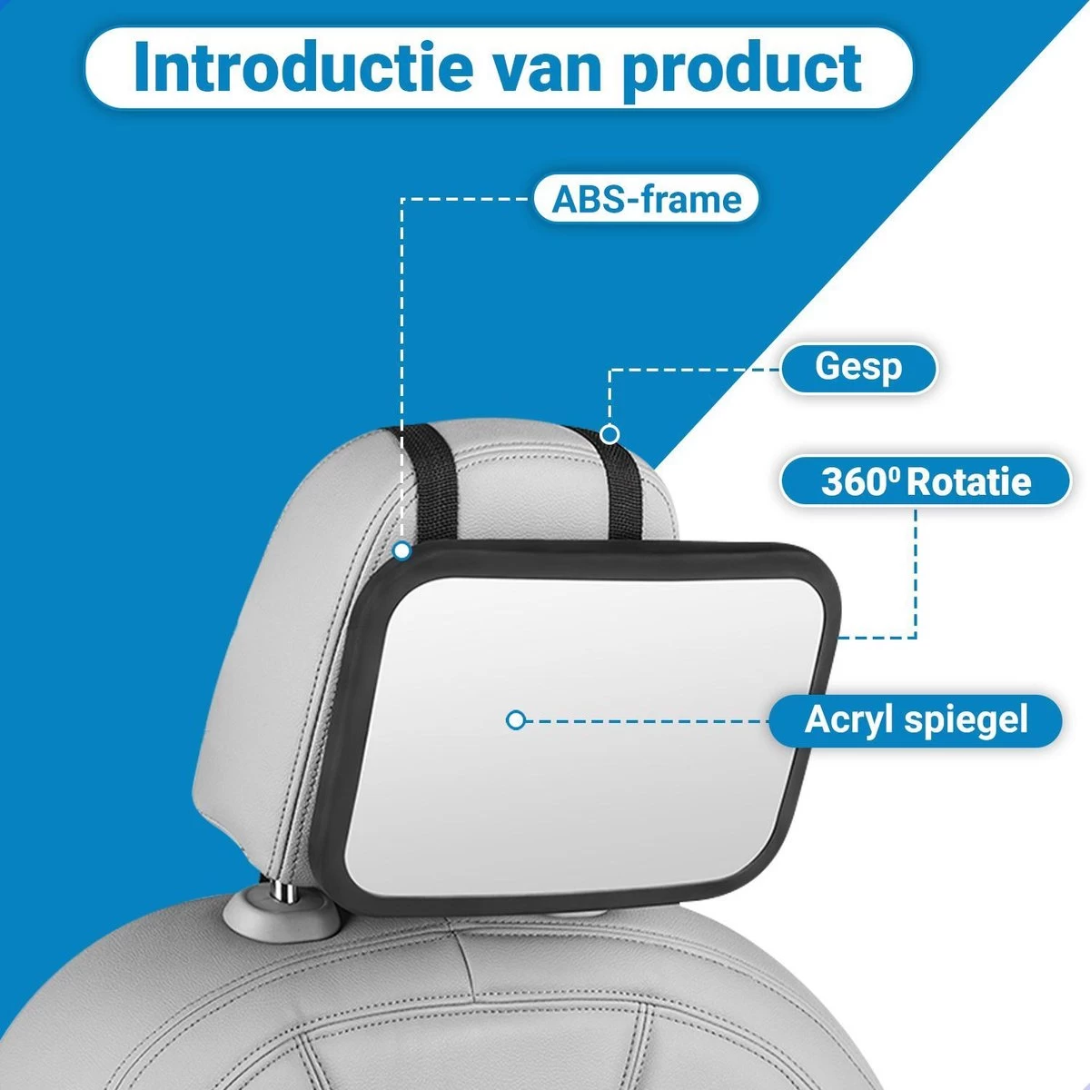 De Achterbank baby spiegel is 360° Verstelbaar en u kunt hem op elk gewenste positie instellen. De spiegel is namelijk aangesloten op een zwenkbare bevestiging van de rugleuning. Hiermee krijgt u de perfecte hoek om uw baby goed in de gaten kunnen houden zonder uw Auto achteruitkijkspiegel te bewegen.
