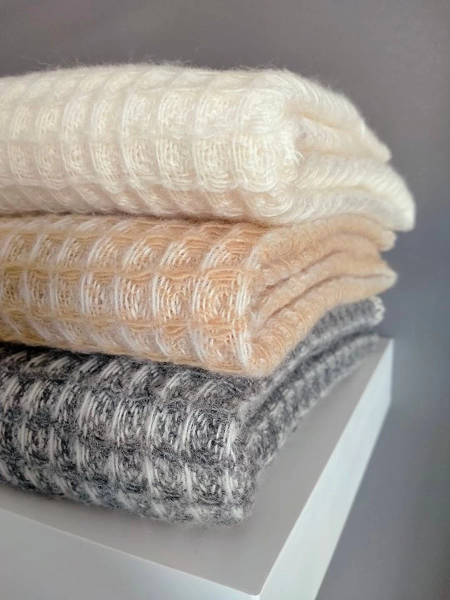 De wollen wafel dekens voelen dunner aan dan bijvoorbeeld de beehive dekens van Pure Baby Love. Maar qua warmte maakt het nagenoeg geen verschil. Juist in de wafel dekens blijft warmte goed behouden tussen de draden en is het een veelgebruikte weving in Scandinavië.