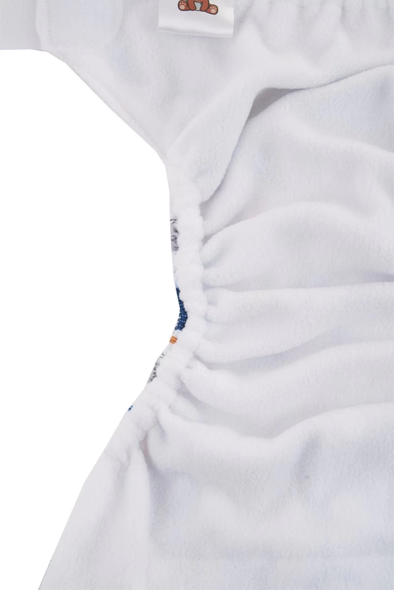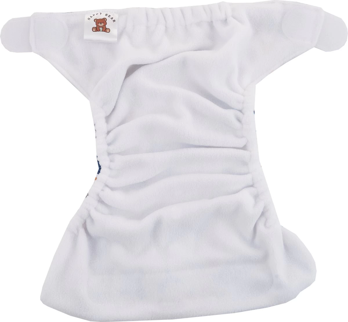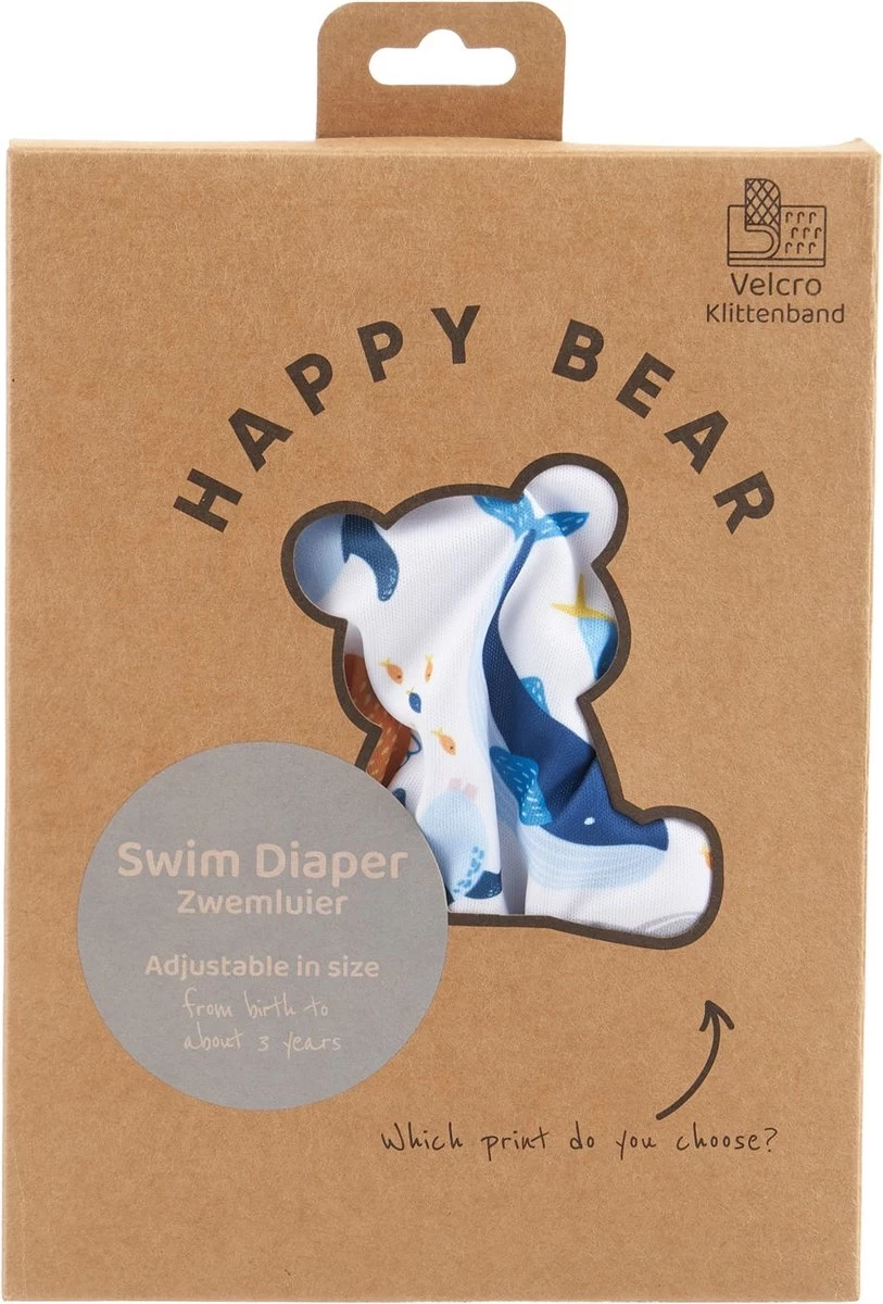 Zorg dat de zwemluier goed aansluit om de beentjes en de romp van je baby, zodat eventuele ontlasting er niet uit kan lopen. Er hoeft geen wegwerpzwemluier onder de HappyBear zwemluier.